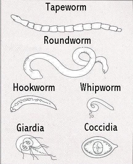 Cestodele, ascarizii, viermii cu cârlig și viermii bici infestează intestinul și au ca simptomatologie:
